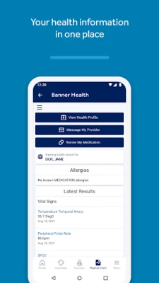 Features include: - Find the closest Urgent Care to you, view available times and book your visit. - Find the closest doctor near you or a specific location and search by insurance accepted, specialty, condition, doctor name, language, and more - Call to schedule your doctor or provider visit - Access your patient account to view your medical chart - Pay your bills - View health related articles and content provided by bloggers from across the Banner Health system