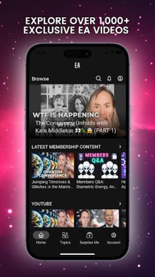 Unlock more EA with the Cosmic Society. Access a growing library of videos based on your membership tier. Your current EA website membership seamlessly extends to the app at no extra cost, enabling offline viewing for uninterrupted spiritual growth.