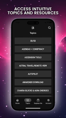 4) Flexible Search Options: Use topic-based or voice search to find specific content, or let the universe surprise you with our 'Surprise Me' feature, delivering content that aligns with your current vibration.