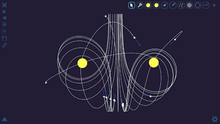 Gravity Simulator lets you control one of the most basic forces in the universe. Launch stars and planets, and watch as gravitational patterns unfold. Peaceful conic sections, dancing spirals, wonderful spirographs, and plenty of utter chaos will appear before your eyes.