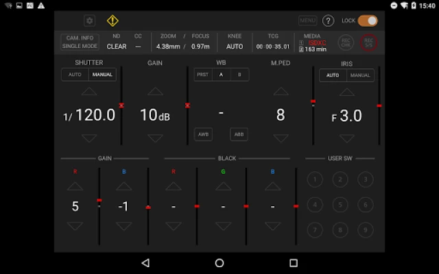 Buttons such as user buttons and REC S/S button in screen can manipulate camera recorder.