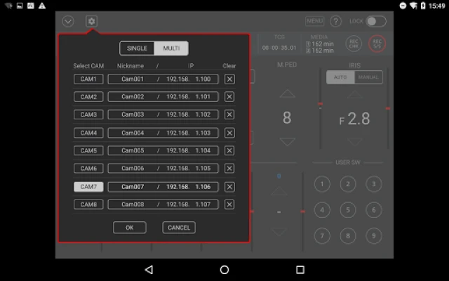 You can set or switch connected cameras in a connect setting panel by tapping a connect manipulation button in the screen. Please refer to "CONNECTION" item by tapping "?" for details.