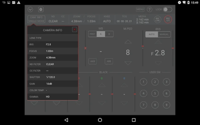 It provides a GUI that displays status information, settings and user switch status in a single screen and the ability to change camera settings intuitively using a screen touch.