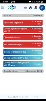 The Lynch Syndrome mobile app will provide Lynch Syndrome carriers with their own portable patient-held, longitudinal, personal care record. All data is patient entered and requires no integration with third-party systems. The app provides NHS-approved information, support, and guidance to Lynch Syndrome carriers plus automatic alerts, reminders, and follow-up for all the NHS-recommended Lynch Syndrome screening checks All data storage and any user the data is only with explicit patient consent that is given and recorded in the mobile app.