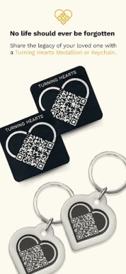 Access the 'TurningHearts Medallions' feature with QR codes for interactive memorials.