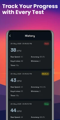 - Advanced analytics to give deeper insights into typing habits, error patterns, and long-term improvements